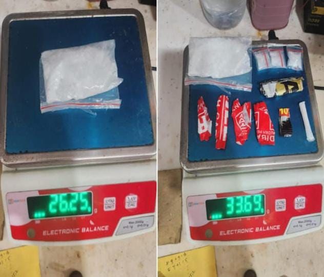 Dari tangan tersangka, petugas berhasil menyita sejumlah barang bukti, di antaranya 1 paket besar sabu bruto 25,33 gram, 10 paket kecil sabu bruto 4,73 gram, 1 pack plastik klip bening, 1 timbangan digital merk Camry, 1 unit HP Samsung A12, 1 buah lakban merah bertuliskan “Fragile”, 1 brankas besi kecil warna hitam.