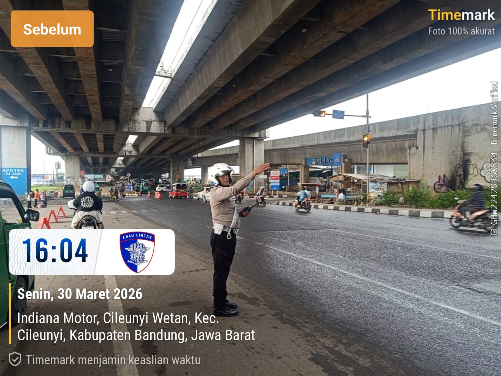 Seperti yang dilakukan oleh anggota Unit Lalu Lintas dari Polsek Cileunyi jajaran Polresta Bandung, yakni Aiptu Awal Candra, yang melaksanakan pengaturan lalu lintas sore hari di kawasan Underpass Tol Cisumdawu, Jalan Raya Sumedang–Bandung. Senin (30/3/2026)