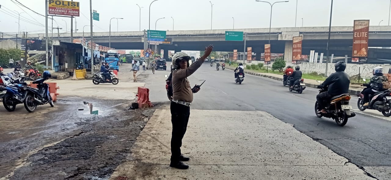 Antisipasi Kepadatan Pagi, Polantas Polsek Cileunyi Atur Arus Kendaraan di Pertigaan Panyawungan