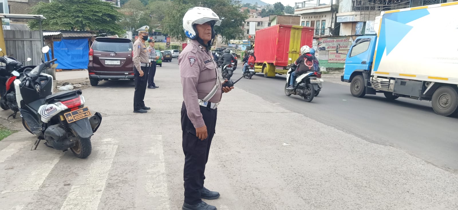 Kegiatan ini dilakukan di bawah kendali Kanit Lantas AKP Suhardi sebagai bagian dari upaya preventif mencegah kemacetan dan menjaga keselamatan pengguna jalan.
