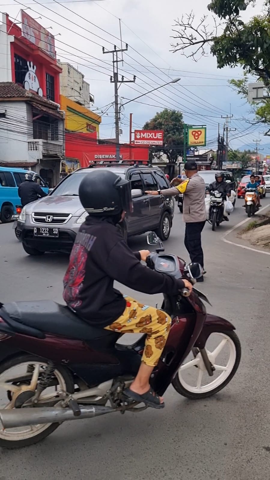 Di sela kegiatan pengaturan lalu lintas, Aipda Dian Rosdiana juga secara aktif menyampaikan imbauan kepada para pengendara agar tetap berhati-hati, menjaga konsentrasi saat berkendara, serta memperhatikan kondisi cuaca yang tengah diguyur hujan.