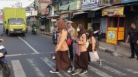 Ciptakan Keselamatan, Anggota lantas Polsek Cileunyi berikan Pelayanan Sebrangkan Anak Sekolah
