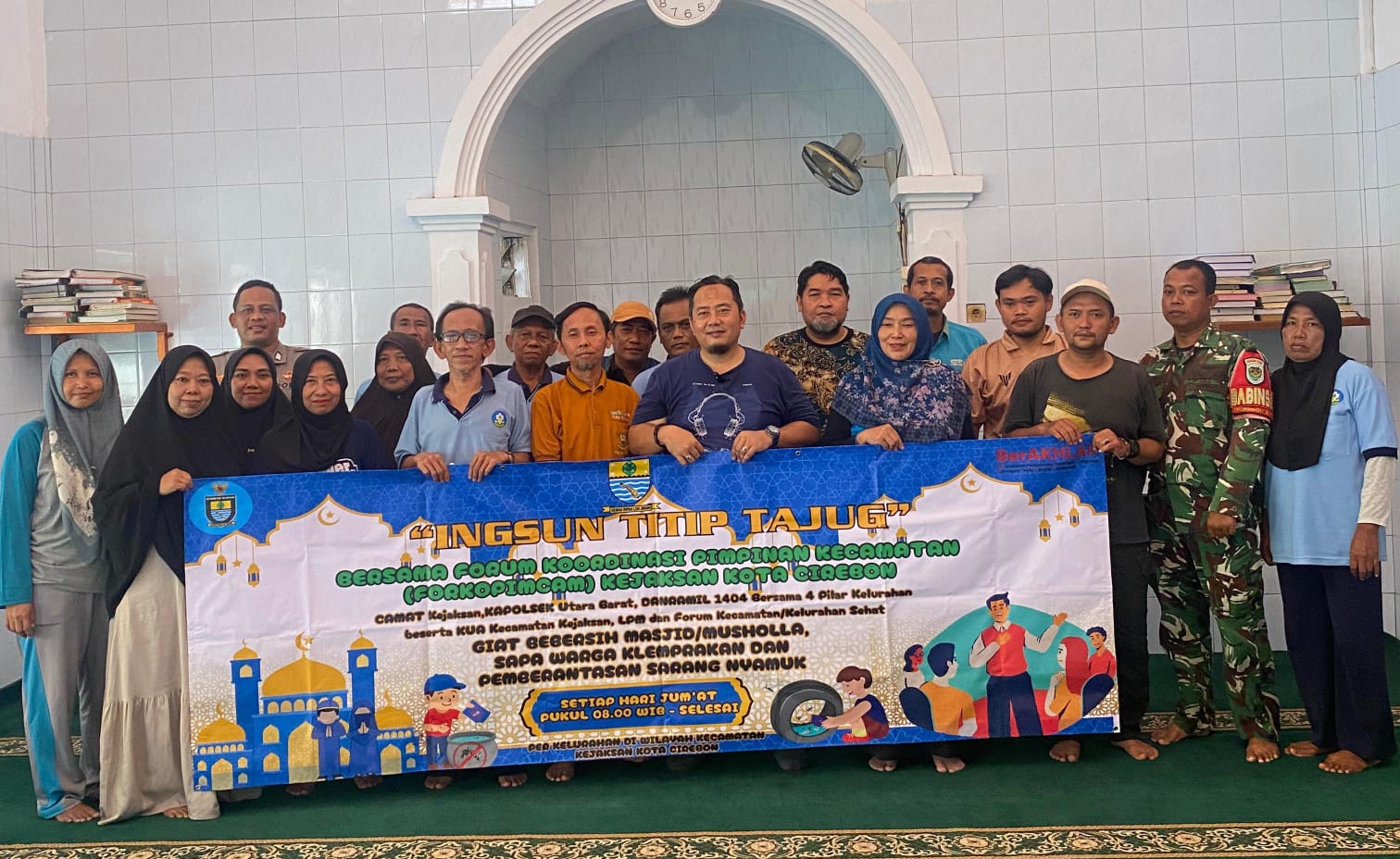 Sebagai aparat kewilayahan, Babinsa mendukung penuh program kerja Kecamatan Kejaksan yang rutin dilaksanakan setiap hari Jumat ini. Dukungan tersebut diwujudkan melalui keterlibatan langsung dalam kegiatan gotong royong membersihkan lingkungan masjid sekaligus mengedukasi masyarakat tentang pentingnya menjaga kebersihan dan kesehatan lingkungan.