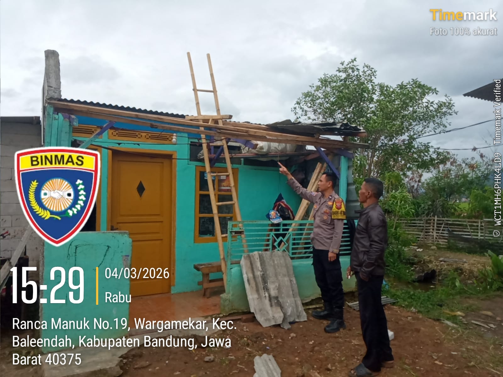 KATERCIKO.COM, Baleendah – (05/03/2026) Bhabinkamtibmas Polsek Baleendah melakukan pengecekan rumah warga yang mengalami kerusakan akibat angin kencang di Kampung Rancamanuk, Kelurahan Wargamekar, Kecamatan Baleendah, Kabupaten Bandung.
