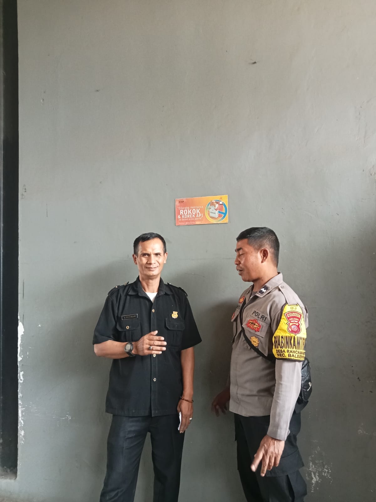 Bhabinkamtibmas Polsek Baleendah melaksanakan kegiatan sambang dan sosialisasi layanan darurat 110 kepada petugas keamanan (satpam) di wilayah Rancamanyar, Kecamatan Baleendah, Kabupaten Bandung.