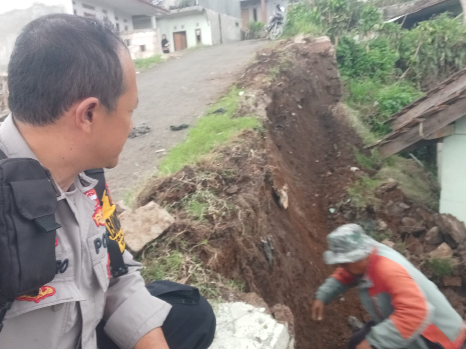Bhabinkamtibmas Sambangi Rumah Warga Terdampak Longsor, Berikan Himbauan Kamtibmas
