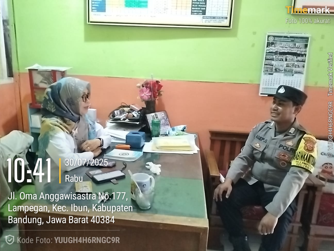 KATERCIKO.COM, Polresta Bandung, – Anggota Bhabinkamtibmas Desa Lempegan, Polsek Ibun, Polresta Bandung Bripka Asep Saepudin laksanakan sambang atau program Door to Door System atau lebih dikenal dengan DDS kepada Kepala Sekolah Dasar Negeri 07 Cieuri yang berada di wilayah desa Lempegan, kecamatan Ibun, Kabupaten Bandung. Rabu, 30 Juli 2025