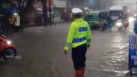 Personil Unit Lantas Polsek Dayeuhkolot Laksanakan Pengaturan di Titik Genangan