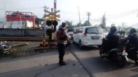 Unit Samapta Polsek Rancaekek pelayanan pengaturan lalulintas di pagi hari di sekitar Perlintasan KA Rancaekek