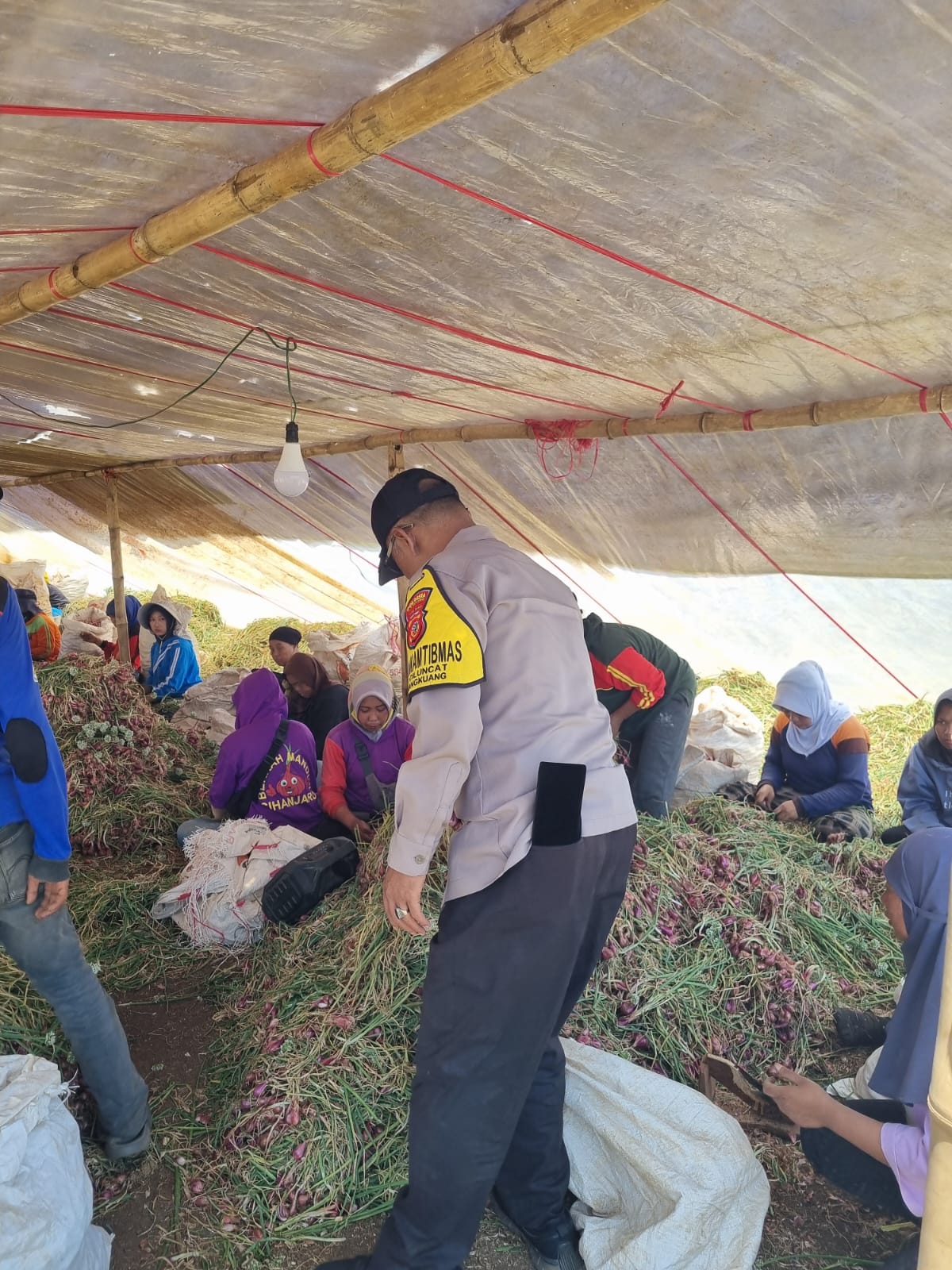 Kegiatan tersebut dilaksanakan di Kampung Malakasari RT 003 RW 008, Desa Ciluncat, Kecamatan Cangkuang, Kabupaten Bandung, dengan menyambangi H. Sujana yang tengah melaksanakan panen bawang merah di lahan pertaniannya. Selasa (31/3/2026).