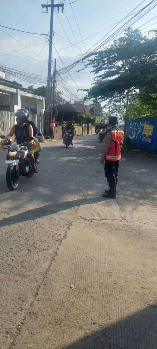 KATERCIKO. COM. Polresta Bandung, – Berikan Kenyamanan dan Kelancaran berlalu lintas, Anggota unit Samapta Polsek Cimenyan, Polresta Bandung Polda Jabar laksanakan kegiatan Yanmas melalui gatur lantas rawan Pagi di wilayah Kecamatan Cimenyan, Kabupaten Bandung. Minggu, 14 Desember 2025.