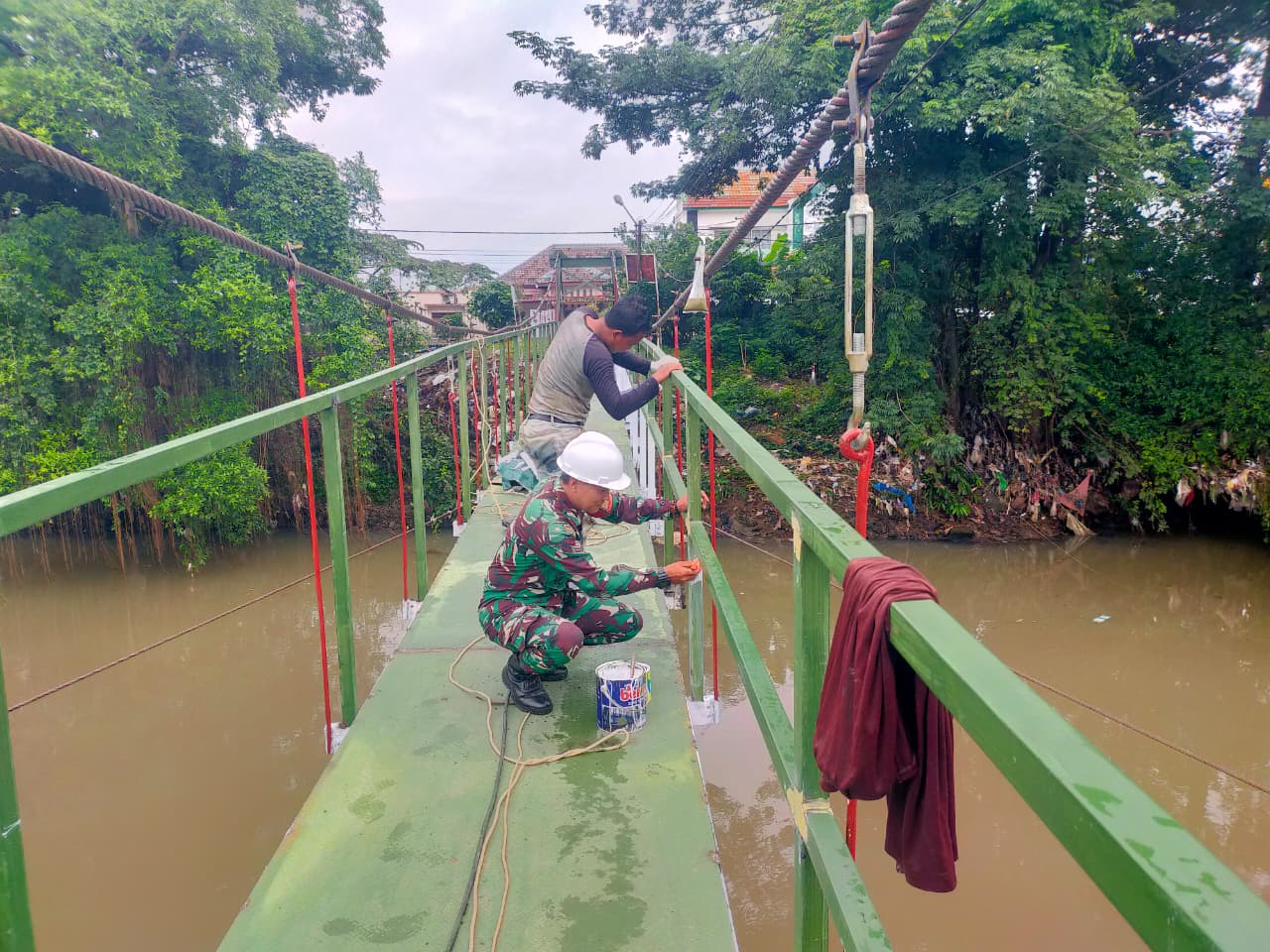 KATERCIKO.COM, Kota Cirebon, (Senin, 9/2/2026), – Babinsa Kelurahan Pegambiran, Sertu Yanto, melaksanakan kegiatan monitoring dan pemantauan perbaikan Jembatan Gantung Kriyan yang akan dikenal sebagai Jembatan Perintis Garuda III. Kegiatan tersebut berlangsung di RT 04 RW 17 Kriyan Barat, Kelurahan Pegambiran, Kecamatan Lemahwungkuk, Kota Cirebon, pada hari ini.
