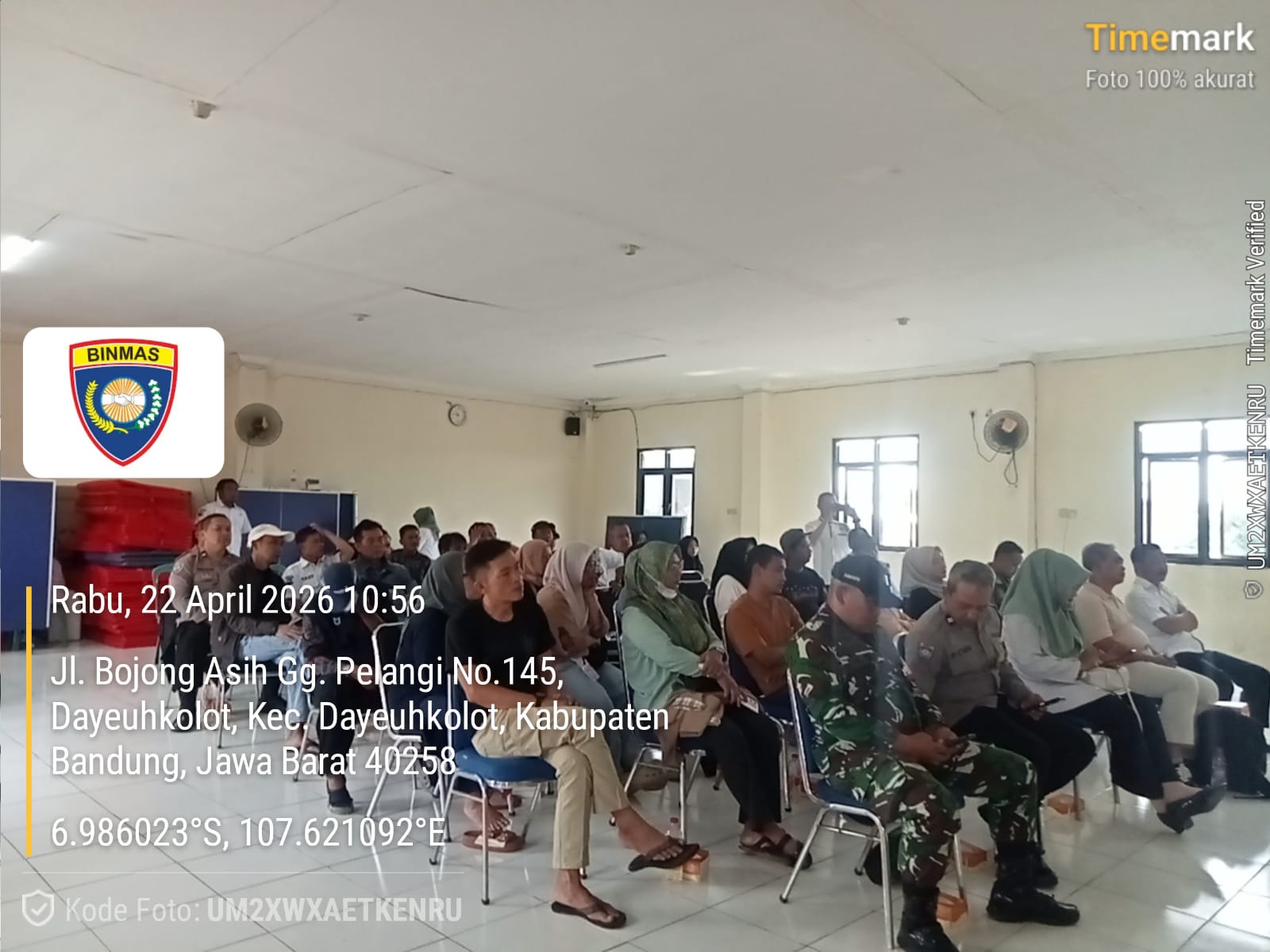 Kanit Lantas Polsek Baleendah AKP Nono Marsono bersama anggota menghadiri kegiatan sosialisasi pembangunan jembatan penghubung Baleendah–Dayeuhkolot yang digelar di GOR Desa Dayeuhkolot, Kecamatan Dayeuhkolot, Kabupaten Bandung.