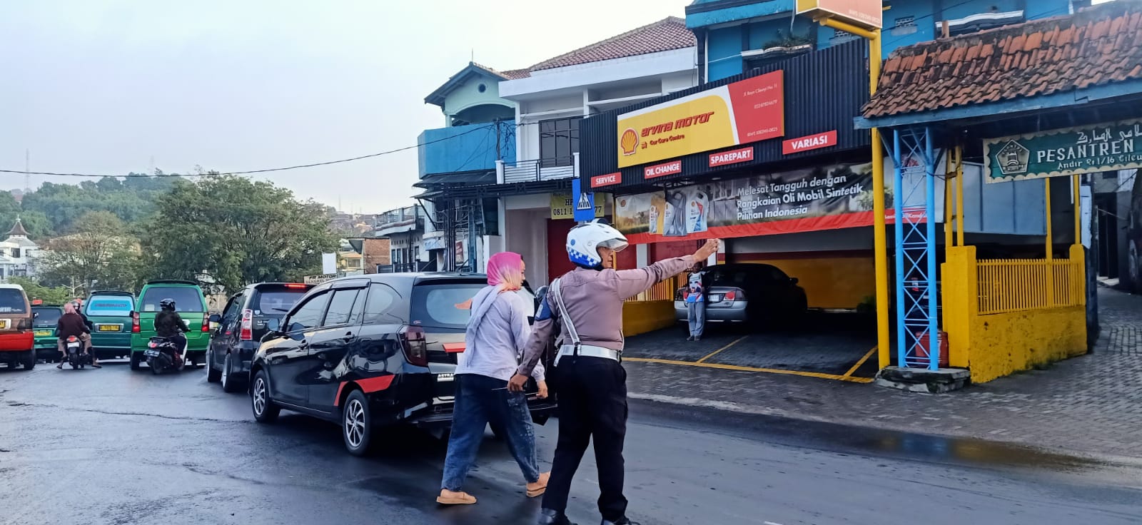 Melihat kondisi tersebut, Aiptu Awal Candra melakukan pengaturan arus kendaraan di titik-titik yang berpotensi menimbulkan kemacetan. Dengan sigap, ia mengarahkan pengendara agar tetap tertib dan mengikuti jalur yang telah diatur.