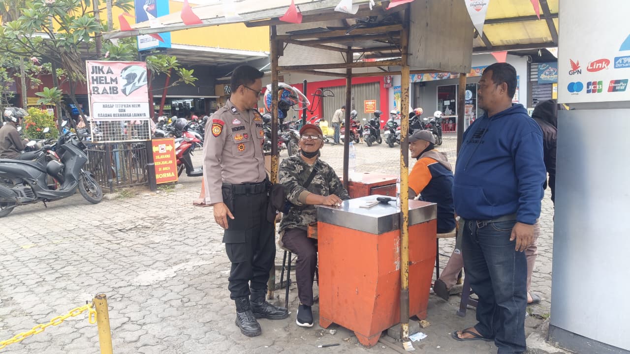 Selain menyampaikan imbauan, Aiptu Hendris juga menyapa sejumlah pengunjung dan mengingatkan agar selalu mengunci kendaraan dengan kunci ganda serta tidak meninggalkan barang berharga di dalam kendaraan.