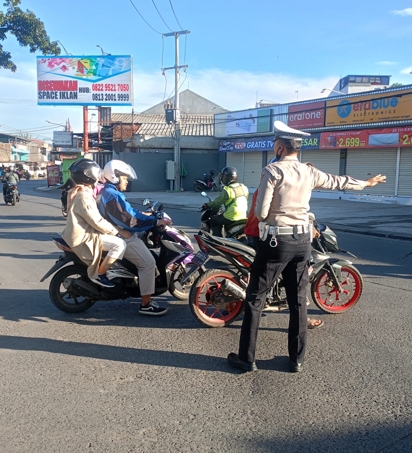 Personel Unit Lantas tampak sigap mengatur kendaraan dari berbagai arah guna mencegah terjadinya kemacetan serta potensi kecelakaan lalu lintas.