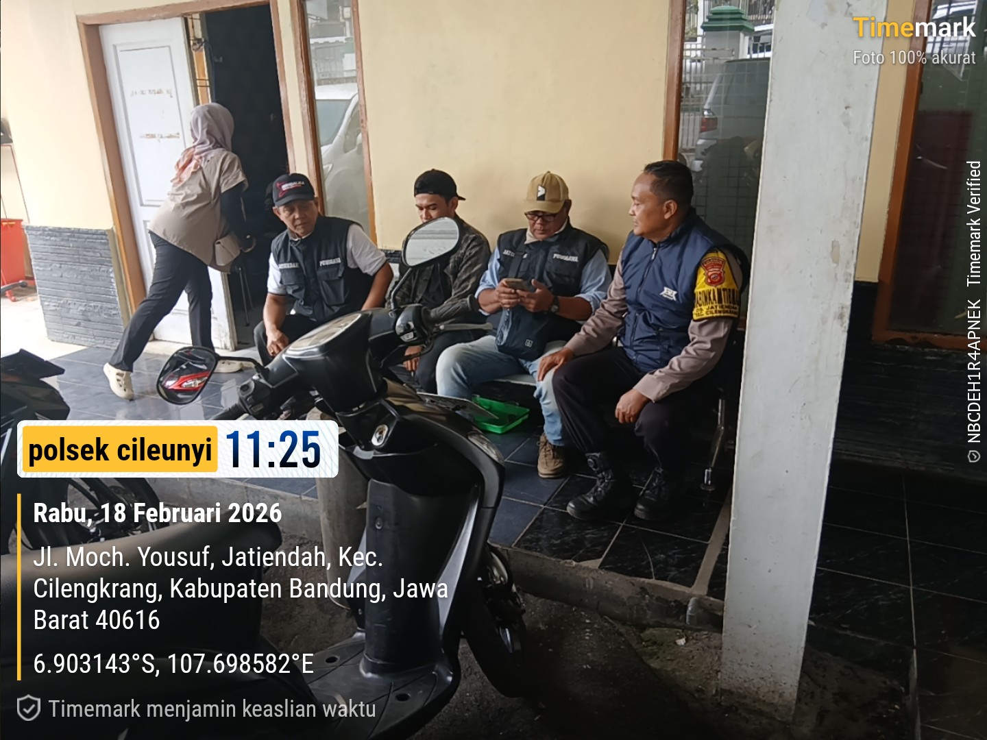 KATERCIKO.COM, Cileunyi – Upaya menjaga situasi keamanan dan ketertiban masyarakat (kamtibmas) tetap kondusif terus dilakukan jajaran kepolisian hingga tingkat desa. Kali ini, Bhabinkamtibmas Desa Jatiendah dari Polsek Cileunyi, Polresta Bandung, Aiptu Robi Mahrom melaksanakan kunjungan silaturahmi ke Kantor Desa Jatiendah, Kecamatan Cilengkrang, Kabupaten Bandung. Rabu (18/2/2026)