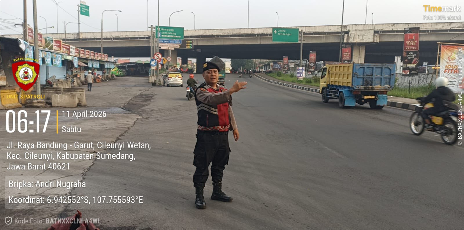 Untuk mengantisipasi hal tersebut, jajaran Polsek Cileunyi, Polresta Bandung melalui personel Unit Samapta, Bripka Andri Nugraha, melaksanakan kegiatan Protap (Prosedur Tetap) pengaturan lalu lintas di pertigaan Jalan Panyawungan, Desa Cileunyi Wetan, Kecamatan Cileunyi. Sabtu (11/4/2026)