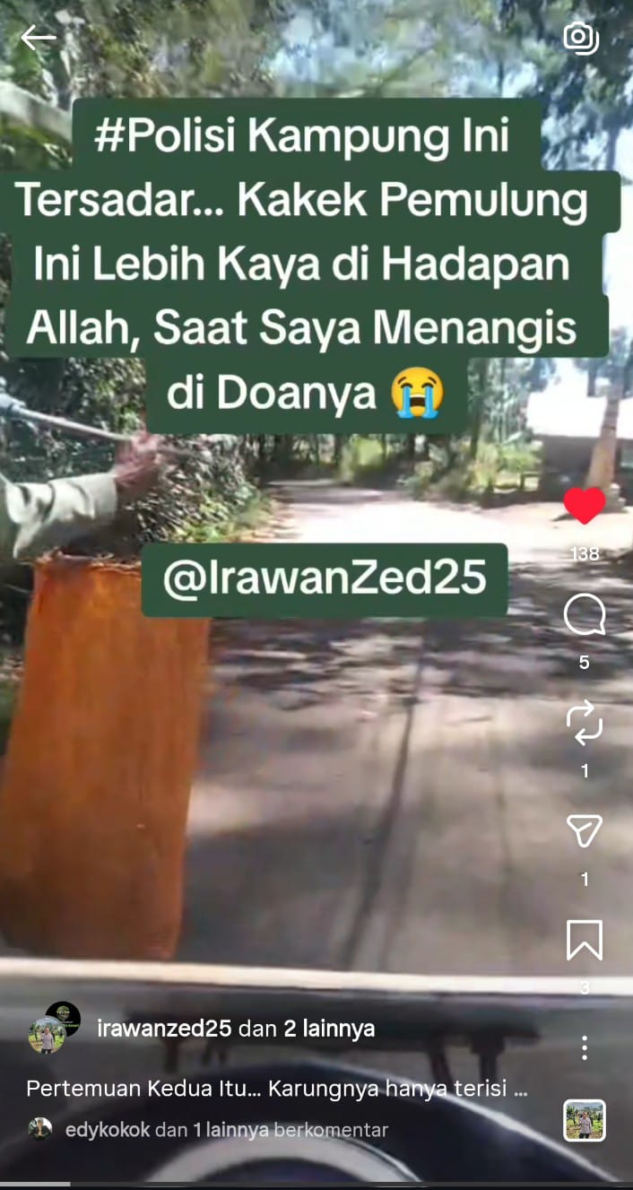 Di awal Ramadhan, Aipda Irawan bertemu dengan seorang kakek renta, seorang pemulung berusia sekitar 85 tahun. Kakek itu berjalan dengan karung di pundaknya, mengumpulkan botol bekas untuk menyambung hidup. Hari-harinya dihitung dari lima hingga sepuluh ribu rupiah—sejumlah kecil, tapi baginya itulah napas kehidupan.