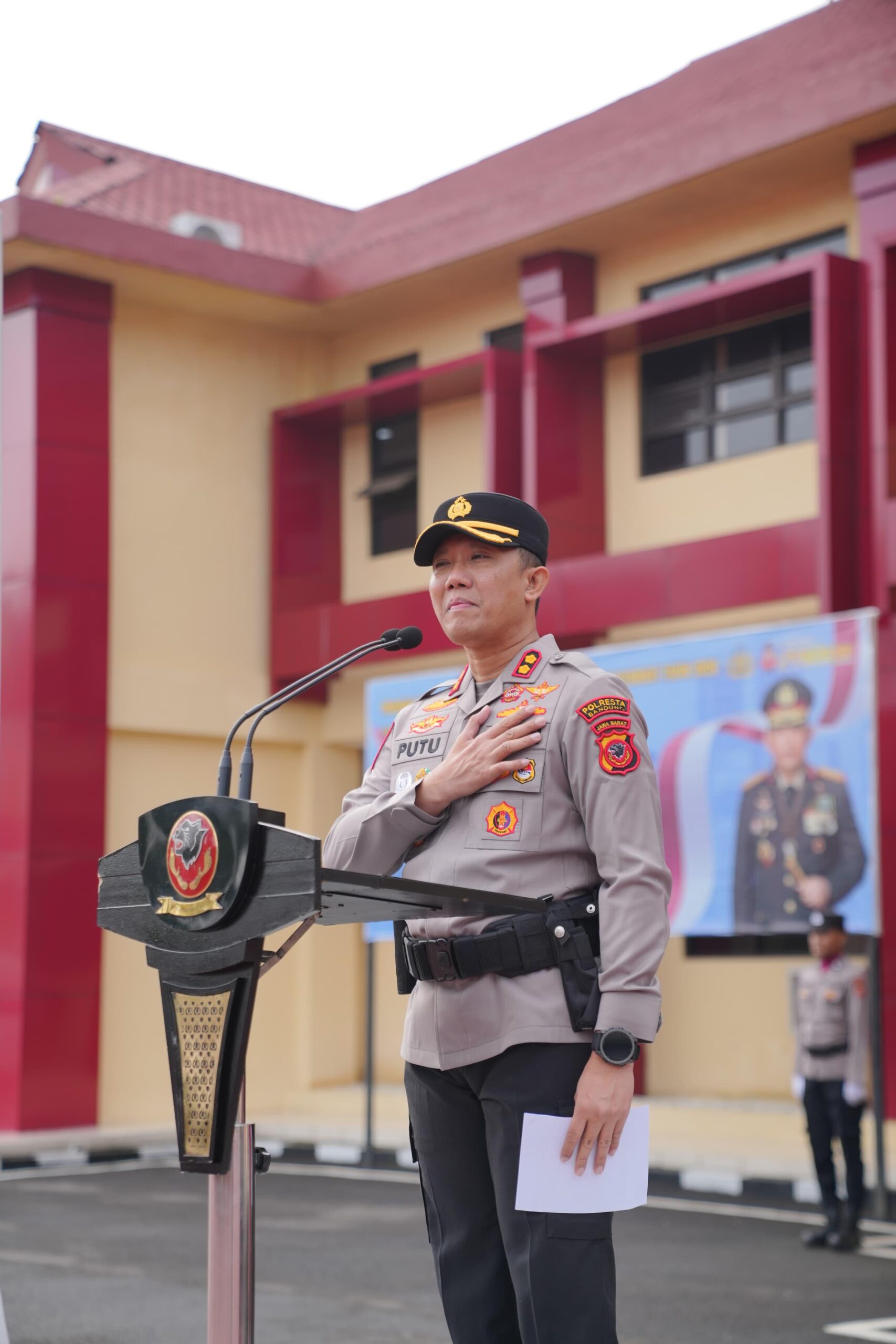 Upacara yang dimulai sekitar pukul 08.00 WIB itu dipimpin oleh Inspektur Upacara AKBP Putu Hendra Binangkari, S.I.K. dengan susunan perangkat upacara lengkap. Seluruh rangkaian kegiatan berjalan tertib, mulai dari penghormatan pasukan, pembacaan Pancasila, hingga amanat Inspektur Upacara.
