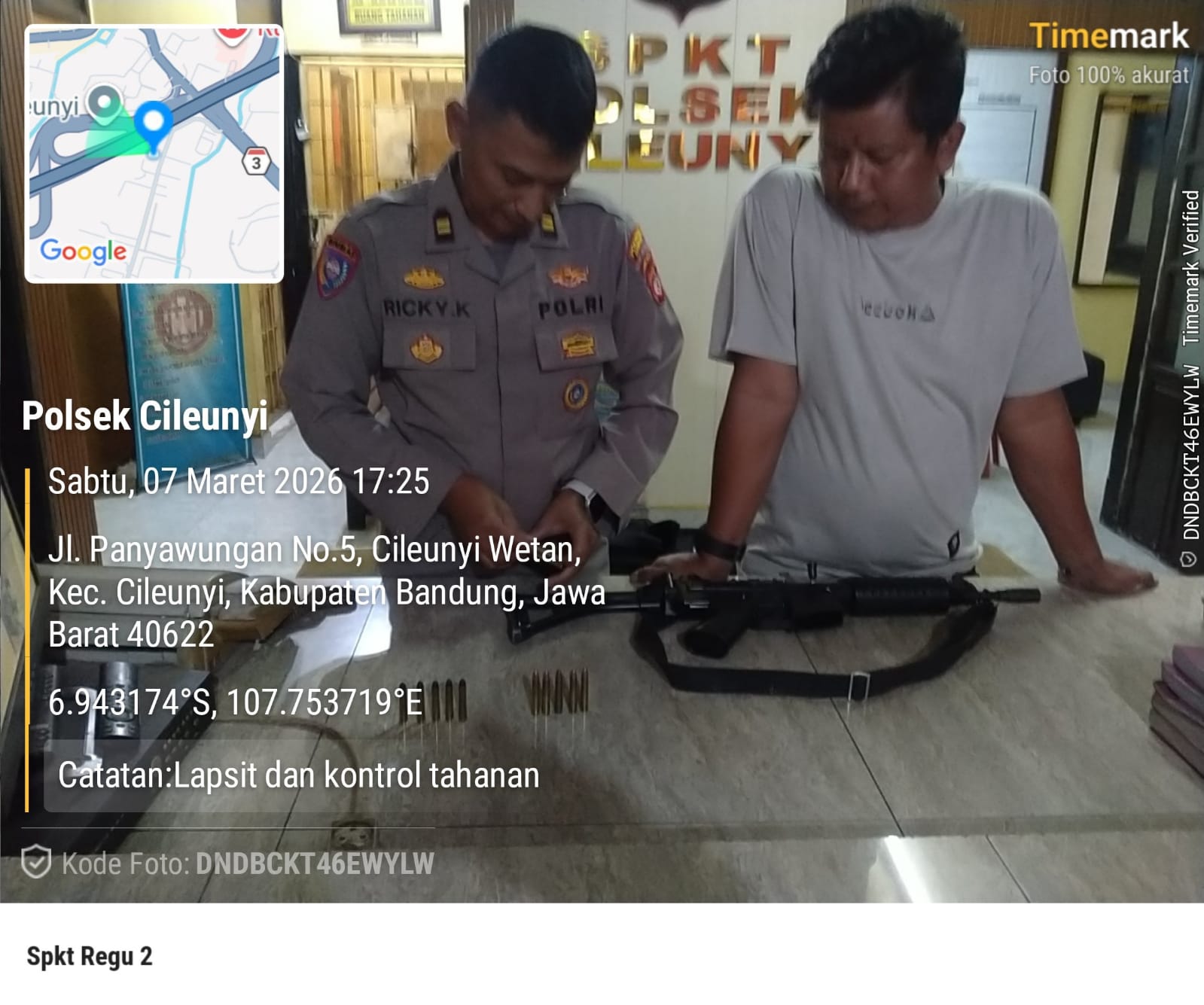 Kapolresta Bandung Kombes Pol. Aldi Subartono, S.H., S.I.K., M.H., CPHR melalui Kapolsek Cileunyi AKP Anggy Prasetiyo, S.T.K., S.I.K., M.H., M.I.K. menyampaikan bahwa pengecekan senjata api dinas merupakan bagian penting dalam menjaga profesionalitas serta kesiapsiagaan personel kepolisian.