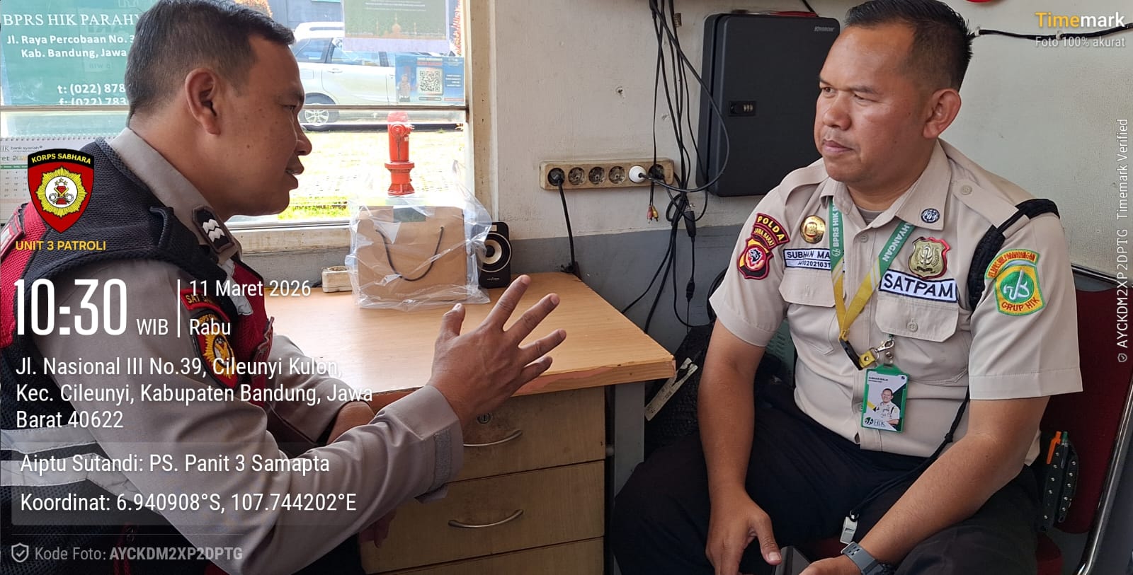 Kegiatan tersebut dilakukan oleh Aiptu Sutandi bersama rekannya Bripka Andri Nugraha dengan menyambangi kantor Bank BTN Cimekar serta BPRS HIK Parahyangan yang berlokasi di Jalan Percobaan, Desa Cileunyi Kulon, Kecamatan Cileunyi. Rabu (11/3/2026)