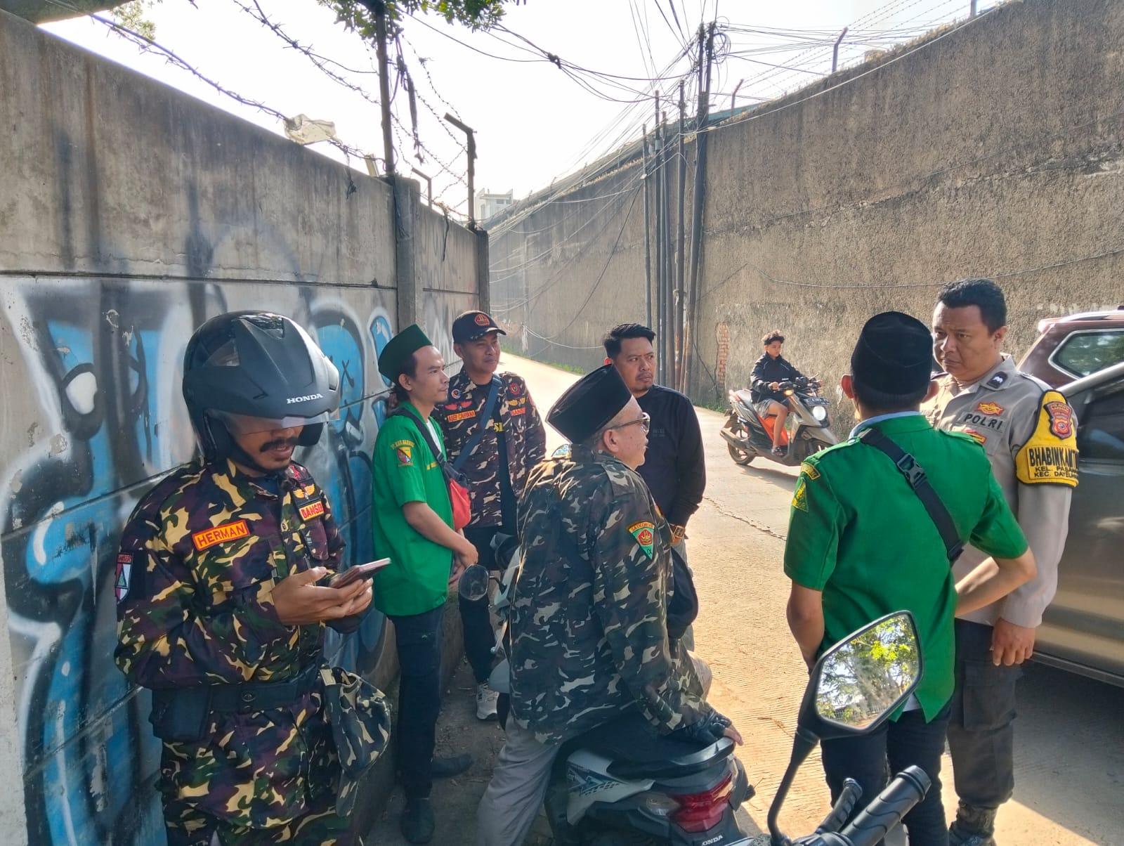 Untuk memastikan kegiatan berjalan aman dan tertib, personel Polsek Dayeuhkolot yang dipimpin oleh Kanit Intelkam bersama anggota melaksanakan pengamanan serta pemantauan langsung di lokasi titik kumpul pemberangkatan massa.
