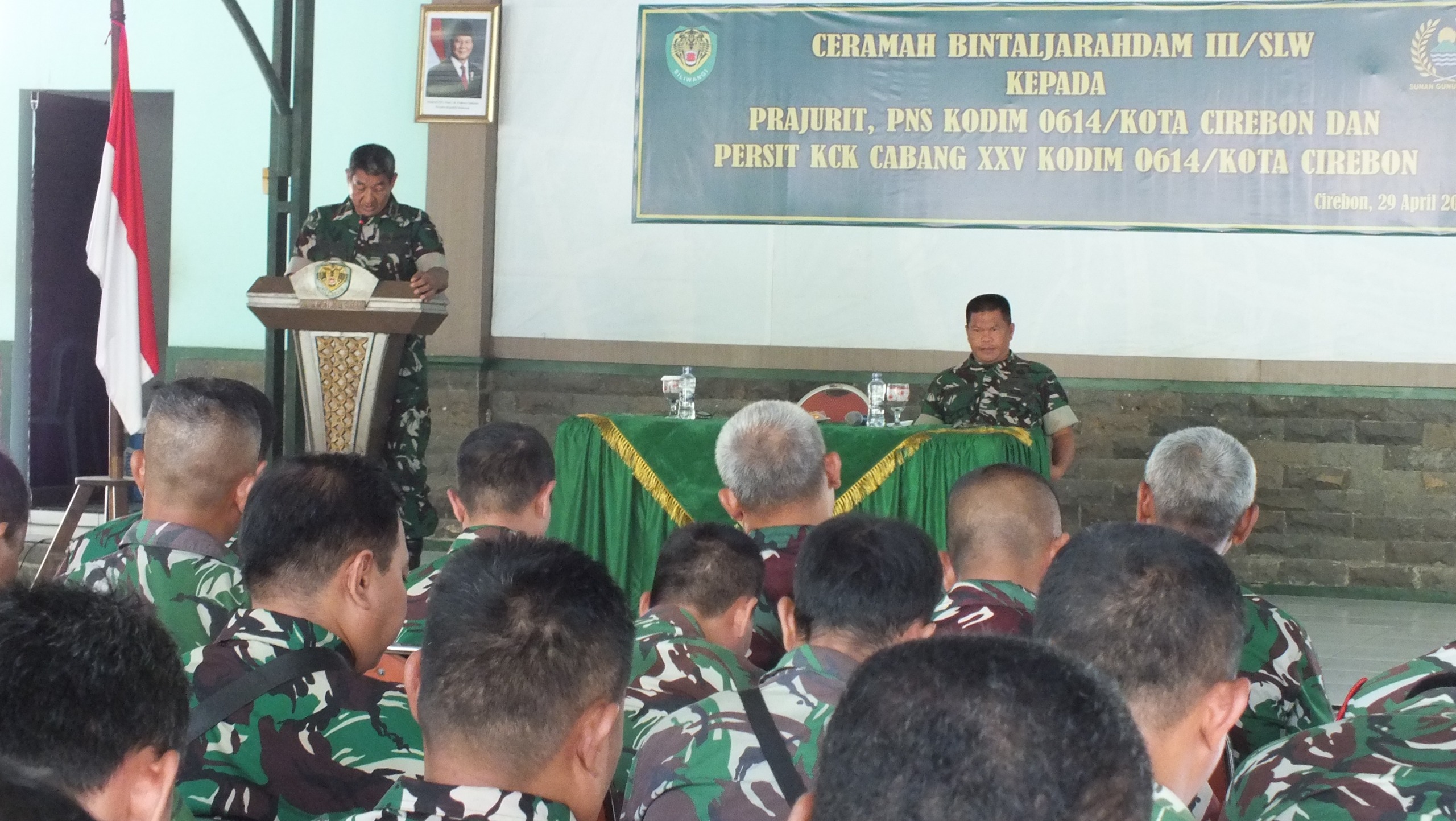 KATERCIKO.COM, KOTA CIREBON, (Rabu, 29/4/2026), – Kodim 0614/Kota Cirebon bekerja sama dengan Bintaljarahdam III/Siliwangi menyelenggarakan kegiatan ceramah pembinaan mental dan sejarah (Bintaljarah) bagi prajurit, PNS, serta anggota Persit Kartika Chandra Kirana (KCK) Kodim 0614/Kota Cirebon. Kegiatan tersebut berlangsung di Pendopo Makodim 0614/Kota Cirebon, Jalan Pemuda No. 45, Kota Cirebon.
