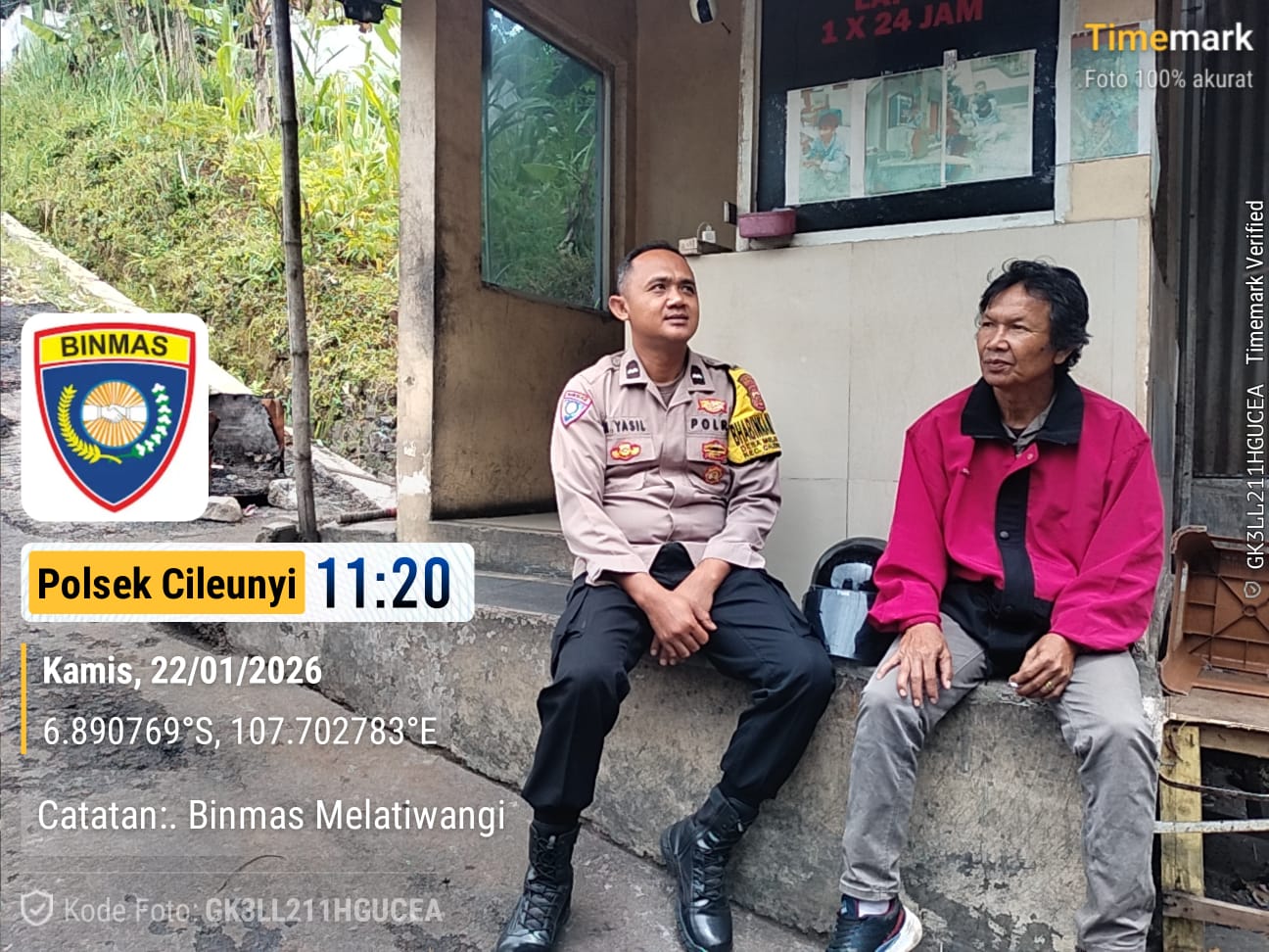 KATERCIKO.COM, Cilengkrang – Upaya menjaga keamanan dan ketertiban masyarakat terus dilakukan jajaran Polsek Cileunyi, Polresta Bandung, melalui pendekatan humanis. Kali ini, Bhabinkamtibmas Desa Melatiwangi, Aipda M. Yasil Nugraha, menyambangi warga binaannya di Komplek Pondok Mulya RT 01/06, Desa Melatiwangi, Kecamatan Cilengkrang, Kabupaten Bandung. Kamis (22/1/2026)