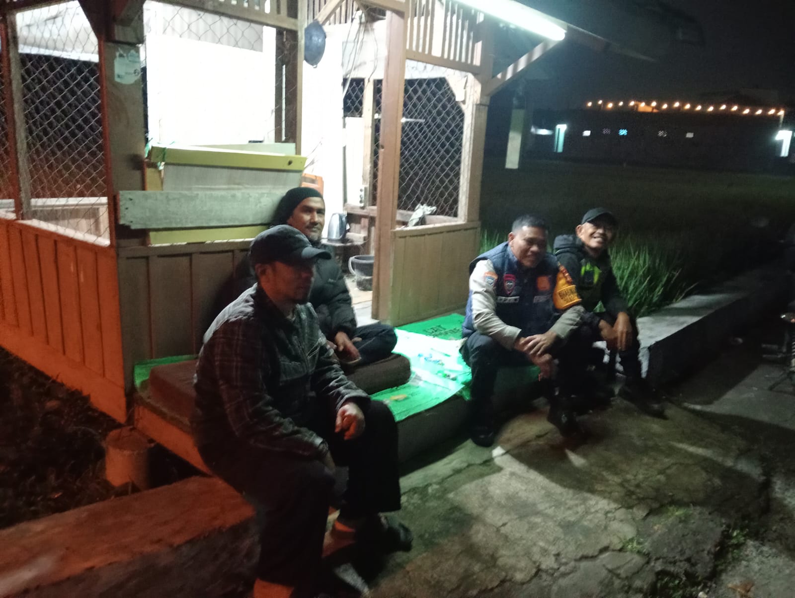 Dalam kunjungannya, Aiptu Juju Jumara menyempatkan diri untuk berdialog langsung dengan warga yang sedang berjaga di pos ronda.