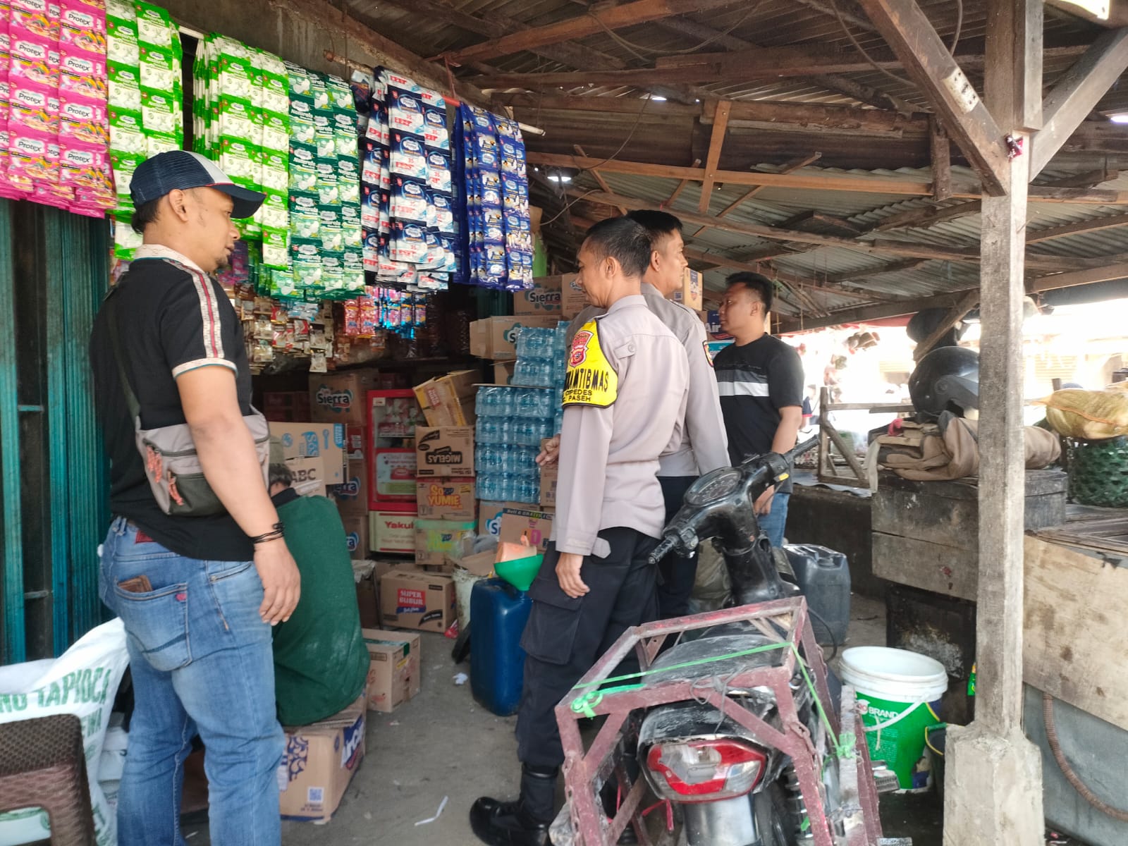 Tampak terlihat sejumlah personel dsri Polsek PSeh Polresta Bandung, Polda Jabar terjun langsung mengawasi ketersediaan, kualitas dan harga bahan pokok di Kecamatan Paseh. Pemantauan kali ini dilakukan di kawasan Pasar Cipaku.