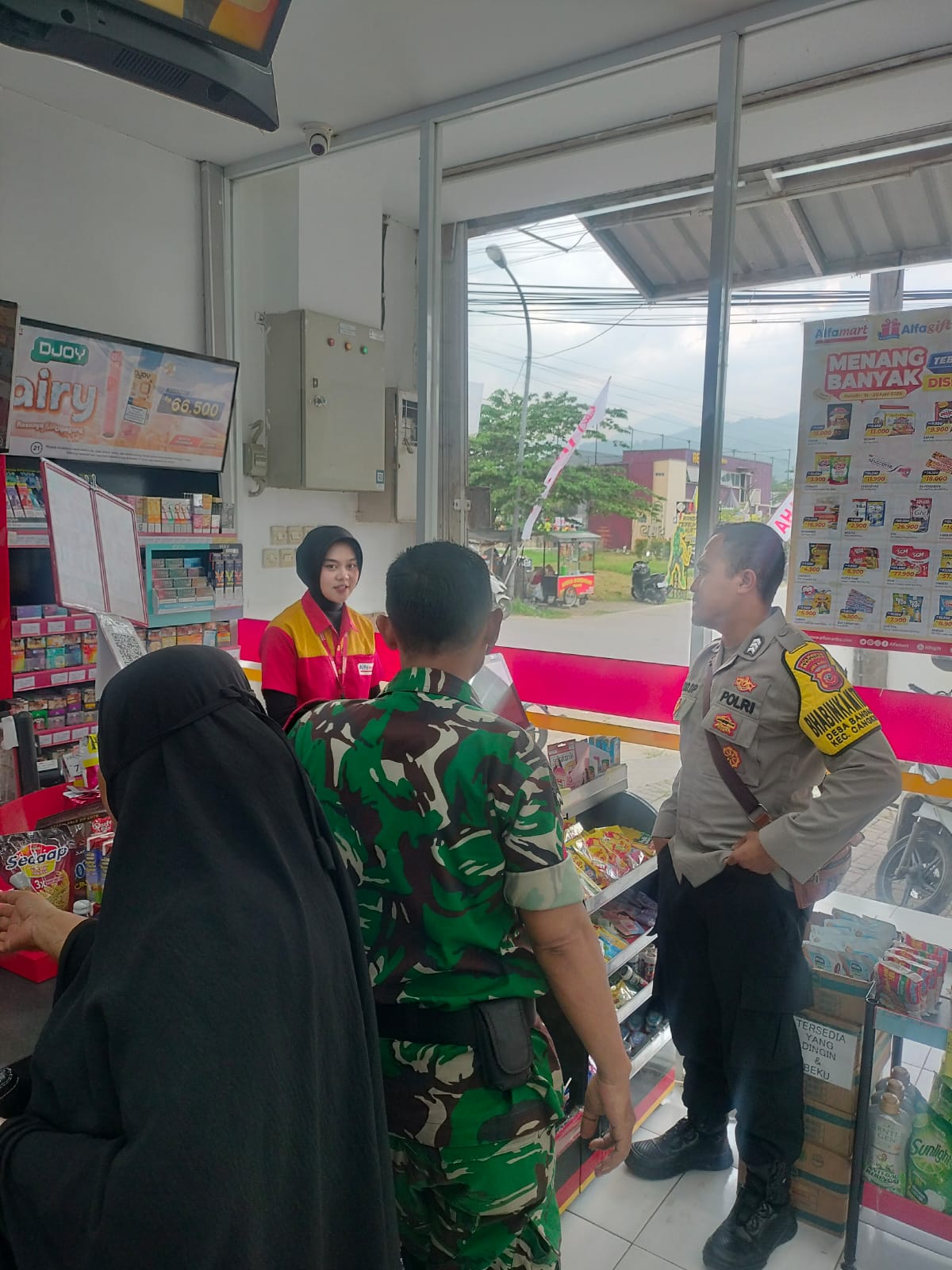 Seperti yang dilakukan oleh Brigadir Yudo DP, S.H., Bhabinkamtibmas Desa Bandasari Polsek Cangkuang Polresta Bandung bersama Babinsa yang melaksanakan sambang ke minimarket Alfamaret Parken Blok E, Desa Bandasari, Kecamatan Cangkuang, Kabupaten Bandung. Minggu (26/4/2026).