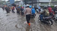Genangan Air Sebabkan Kepadatan Lalu Lintas di Depan PT Metro Garment, Polisi Lakukan Pengaturan Arus