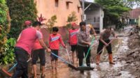 Personel Polsek Dayeuhkolot Dikerahkan Bersihkan Endapan Lumpur Pascabanjir di Pasigaran