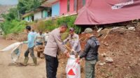 Bhabinkamtibmas Desa Sukamaju Cek Lokasi dan Gelar Gotong Royong Pasca Longsor Kecil di Kp. Madur Kidul