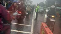 Hujan Tak Halangi Gatur Pagi, Unit Lantas Polsek Dayeuhkolot Pastikan Arus Lalin Lancar