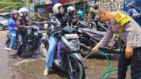 Cegah Rem Blong, Pos Pam Cukang Monteng Ibun Lakukan Penyiraman Kendaraan Pemudik