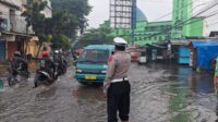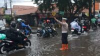 Personel Lantas Polsek Dayeuhkolot Lakukan Pengaturan di Titik Genangan Jalan Moh Toha